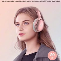 INFURTURE Upgrade Rose Gold Active Noise Cancelling Headphones with Microphone Wireless Over Ear Bluetooth, Deep Bass, Memory Foam Ear Cups, Quick Charge 90H Playtime, for TV, Travel, Home Office